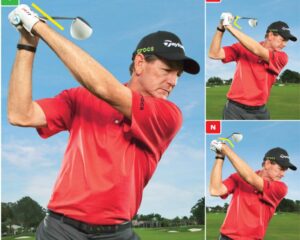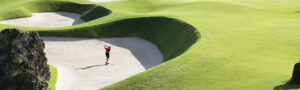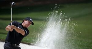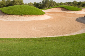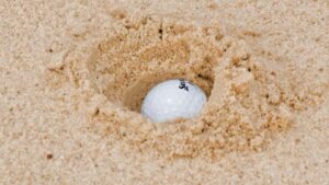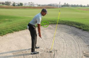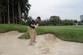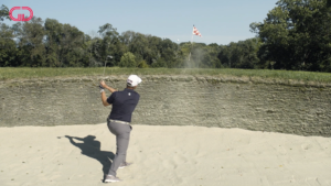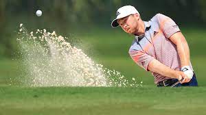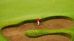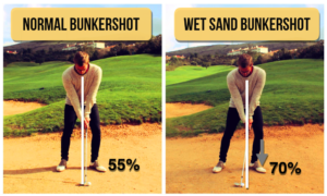 For a downhill lie in a bunker, how should a golfer adjust their shot?