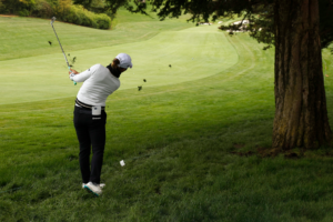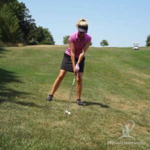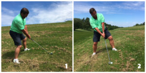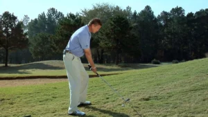 When hitting from a sidehill lie with the ball above the feet, what should a right-handed golfer expect?