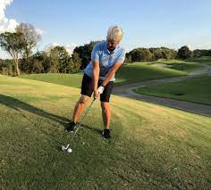 When playing a shot from a slope, how should a right-handed golfer adjust their grip?