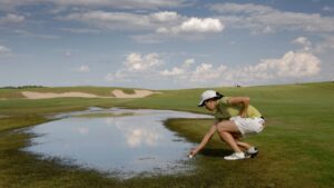 How should a beginner golfer approach hazard areas to maintain a score under 100?